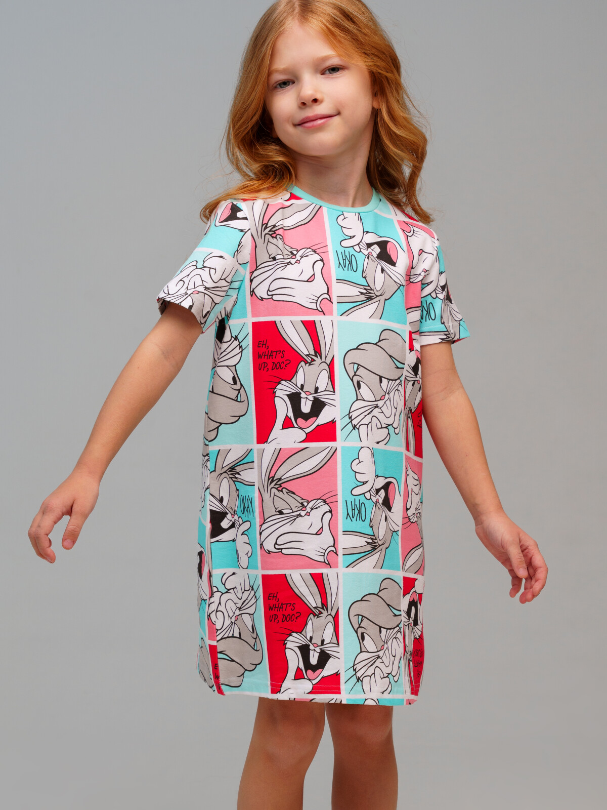 Ночная сорочка детская для девочки. Ночнушка из эластичного и приятного на ощупь трикотажа. Высокое содержание хлопка 95%. Благодаря наличию эластана в составе ткани изделие держит форму и меньше мнется.