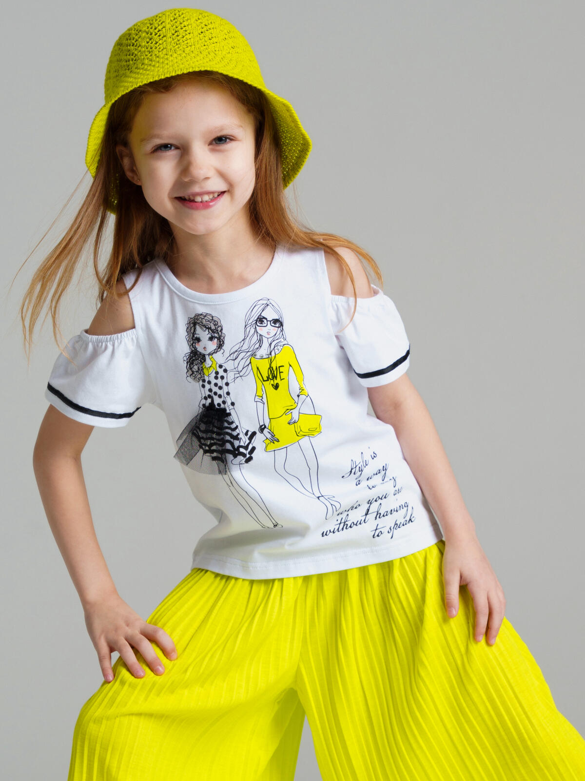Футболка с открытыми плечами из качественного и приятного на ощупь трикотажа джерси. Высокое содержание хлопка 95%. Благодаря наличию эластана в составе ткани изделие проще в уходе и держит форму. Regular fit.