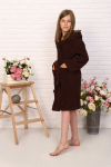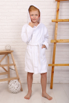 Халат махровый подростковый с капюшоном. Выполнен из махровой кольцепрядильной ткани производства Узбекистан плотностью 365 гр/м2. Состав: 100% хлопок. Пошив: Россия.