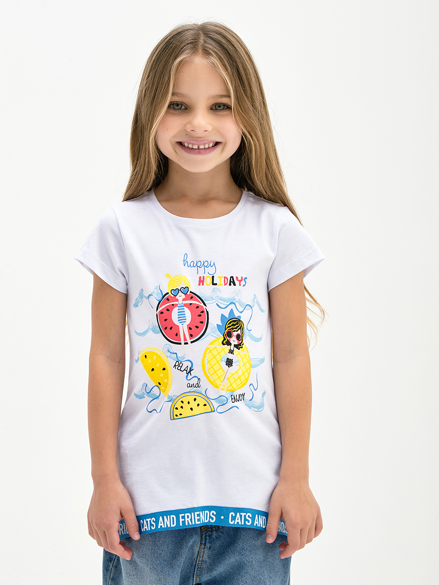 Белая футболка для девочки с принтом