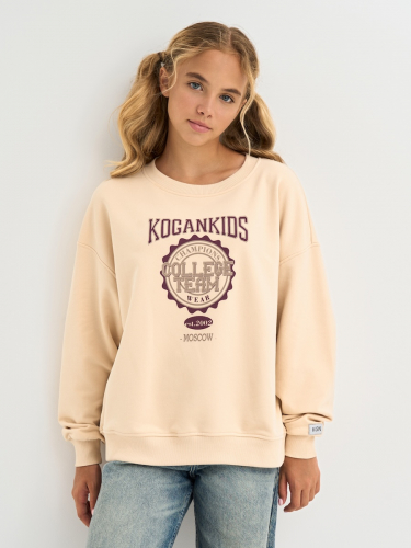 Свишот для детей и подростков, оверсайз кроя. Манжеты и низ толстовки фиксируются эластичной рибаной. Худи декорировано модным принтом. Выполнен из петлевого футера, 80% хлопок, 20% ПЭ.