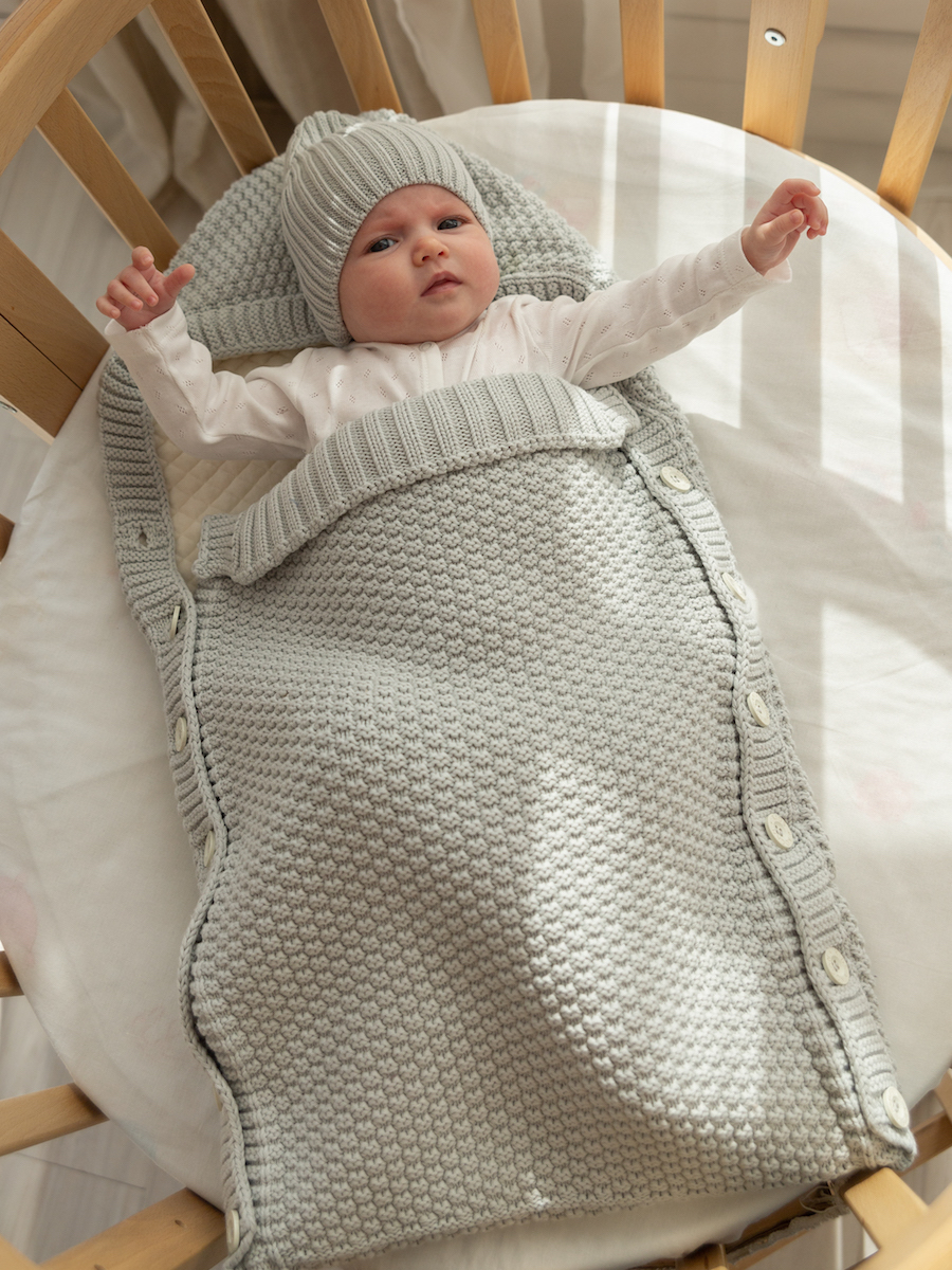 Стильный вязаный конверт на выписку для новорожденных. Мягкий и приятный он идеален для прогулок весной и летом. Подходит для прогулок в коляске, идеален в качестве подарка новорожденному. Для удобства, мы предусмотрели пуговицы по бокам. Внешняя и внутренняя части конверта сделаны из 100% ЭКО хлопка. Конверт сертифицирован по ГОСТ-Р.