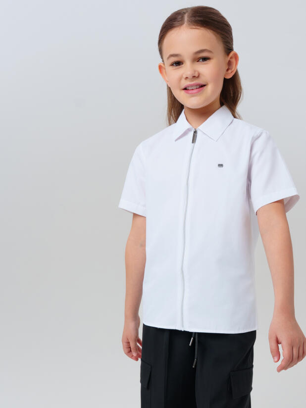 Свободный крой обеспечивает комфорт в течение всего дня, а удобная застёжка на молнии делает блузку практичной для самостоятельного использования. Модель отлично сочетается с любыми элементами школьной формы: юбками, брюками, сарафанами и жилетами от PlayToday.