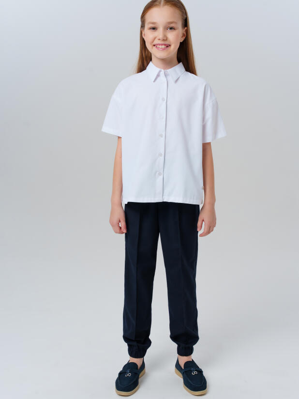 Продуманный комфортный крой помогает ребёнку чувствовать себя свободно и уверенно — и на уроках, и на переменах. Резинки на рукавах добавляют удобства, а застёжка на пуговицах позволяет легко надевать и снимать блузку без помощи взрослых.