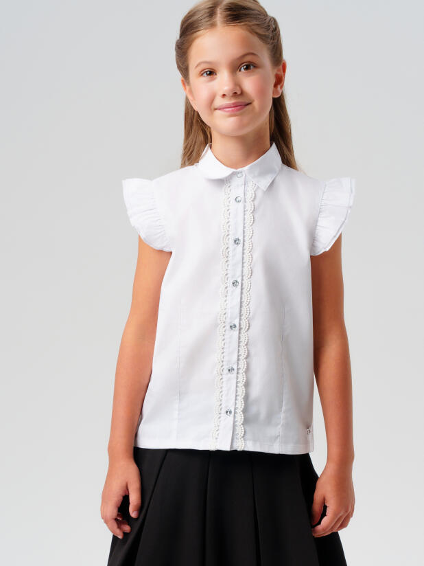 Белая блузка с коротким рукавом для девочки-подростка от PlayToday — стильный и универсальный выбор для школы и торжественных мероприятий.
