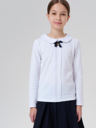 Эта нарядная школьная блузка для девочки сочетает в себе комфорт повседневного трикотажа и элегантность классической школьной формы. Модель выполнена из приятного на ощупь хлопкового полотна с добавлением эластана — ткань дышит, не сковывает движений и хорошо держит форму даже после множества стирок.
