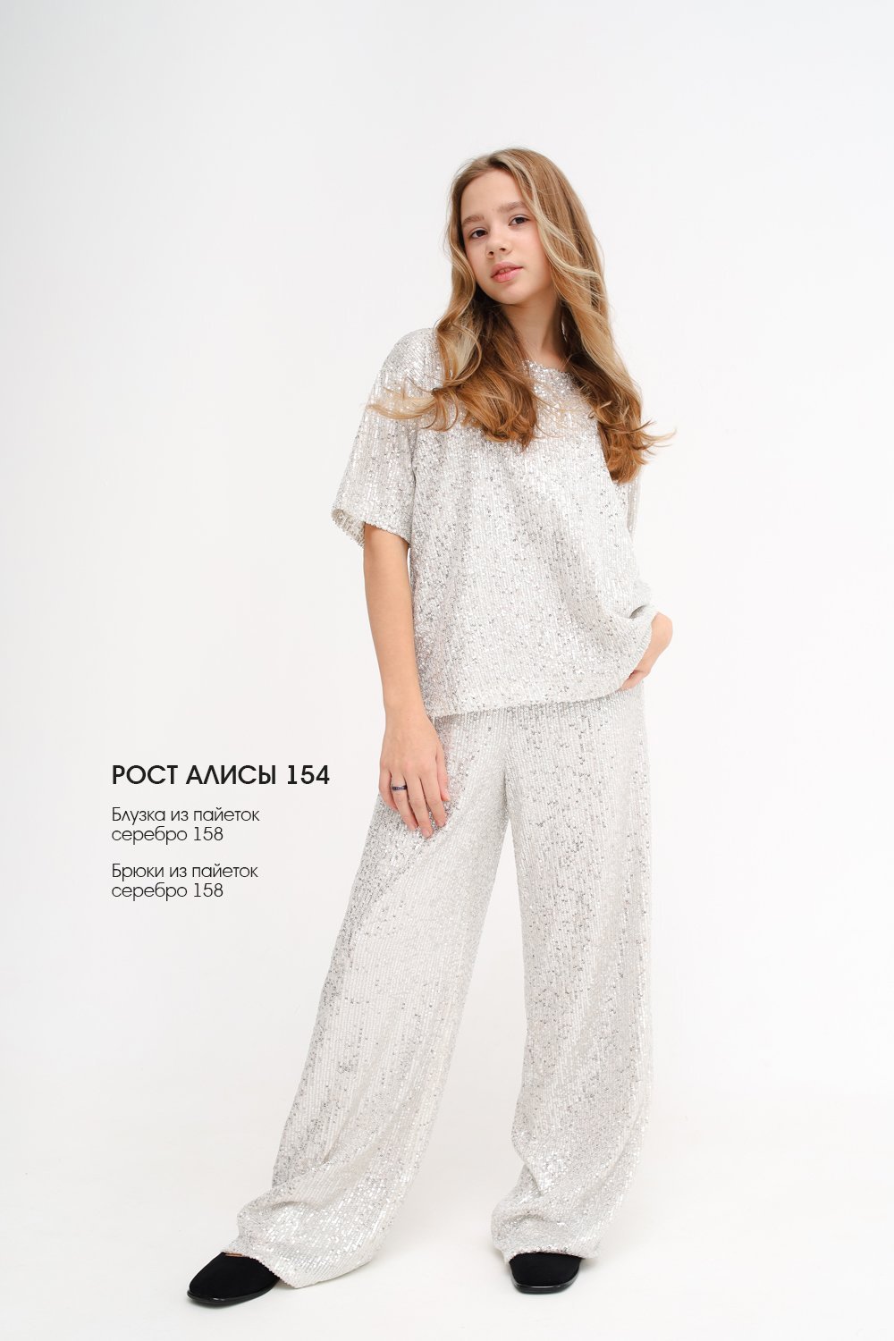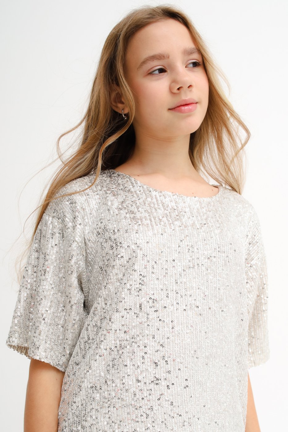 Блузка укороченная для девочки свободного силуэта. На спинке застежка-капелька на пуговицу и петлю.