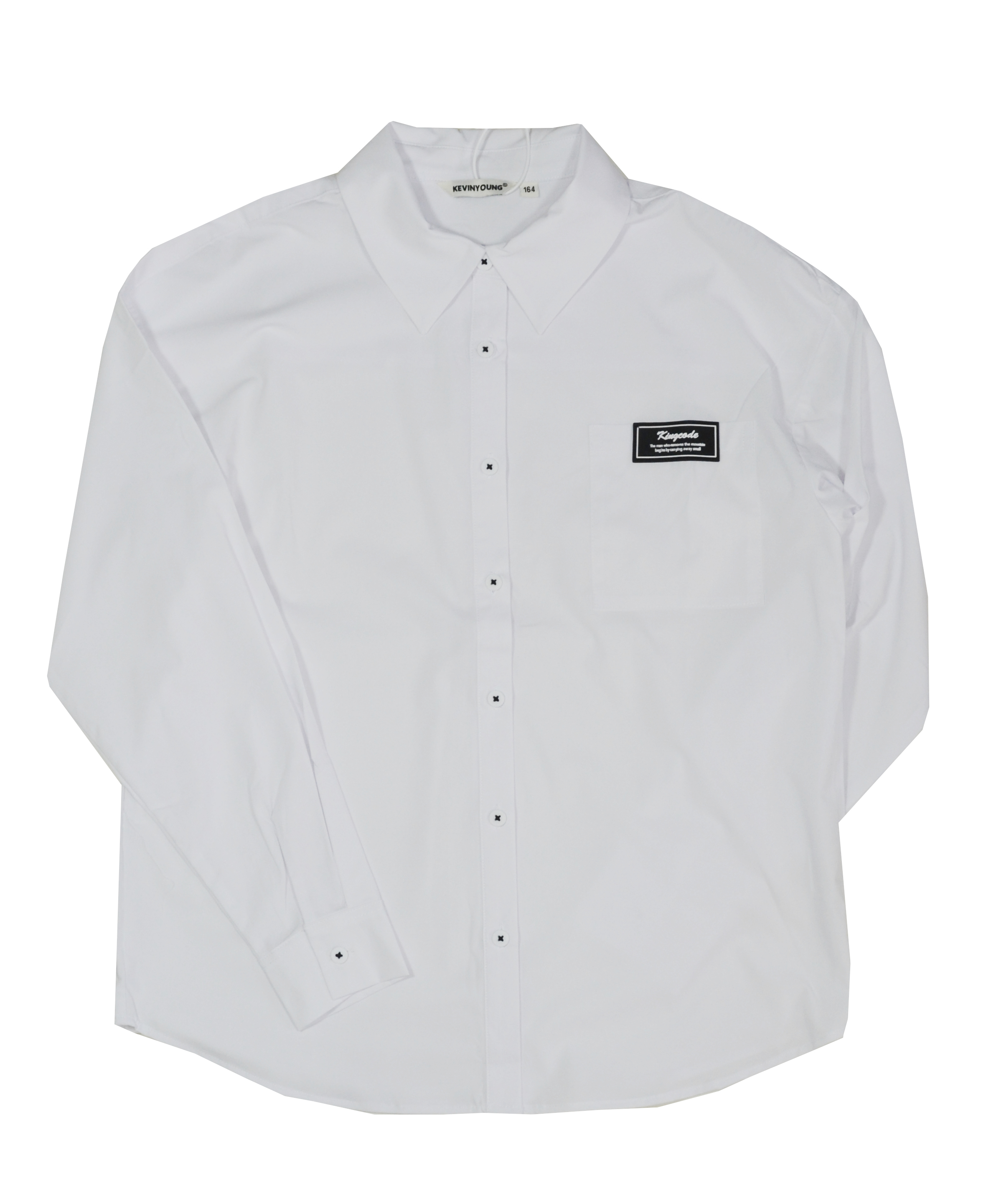 Блузка с длинным рукавом из  премиальной вискозной ткани свободного кроя. Спущенное плечо. Застежка на пуговицы. Накладной карман. Нашит прорезиненный шеврон.