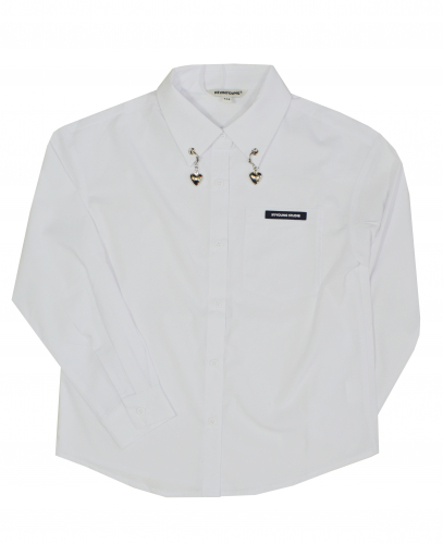 Блузка с длинным рукавом из  премиальной вискозной ткани свободного кроя. Застежка на пуговицы. Накладной карман. По воротнику кулоны сердечки, которые можно убрать или что-то другое добавить.