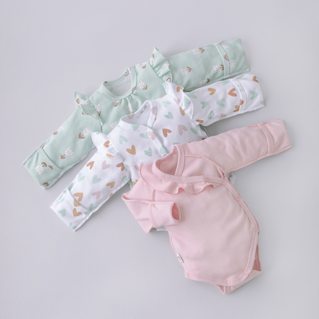 Боди с длинным рукавом "Первые Цветы", с рюшей 3шт/уп
