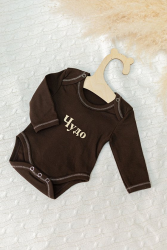 Боди для новорожденных из интерлока в цвете персик. Длинные рукава подойдут для теплоты и защиты в прохладные дни. За счет застежек-кнопок в нижней части и на пересечении горловины, переодевание малыша будет удобным. Бейка в цвет основного полотна на горловине, рукавах и по низу придает изделию завершенный вид. Спереди нанесен принт, который добавит изюминку и индивидуальность образу.