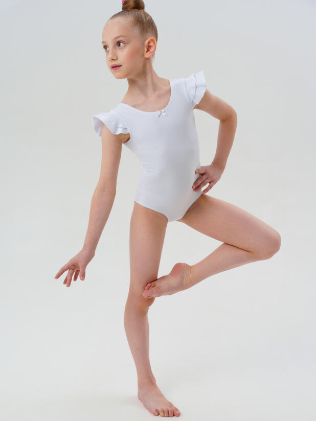 Стильный белый спортивный купальник-боди для девочек от PlayToday — идеальный выбор для гимнастики, танцев и активных тренировок. Комфорт и уверенность в каждом движении.