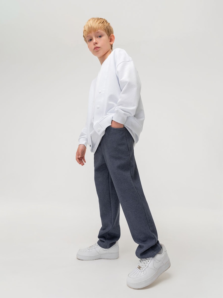 Материал футер двухнитка Состав 80% хлопок 20% полиэстер Брюки прямые слегка зауженные к низу на притачном поясе с внутренней резинкой. Брюки с боковыми карманами.