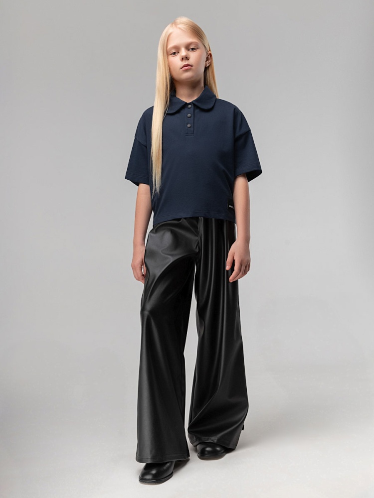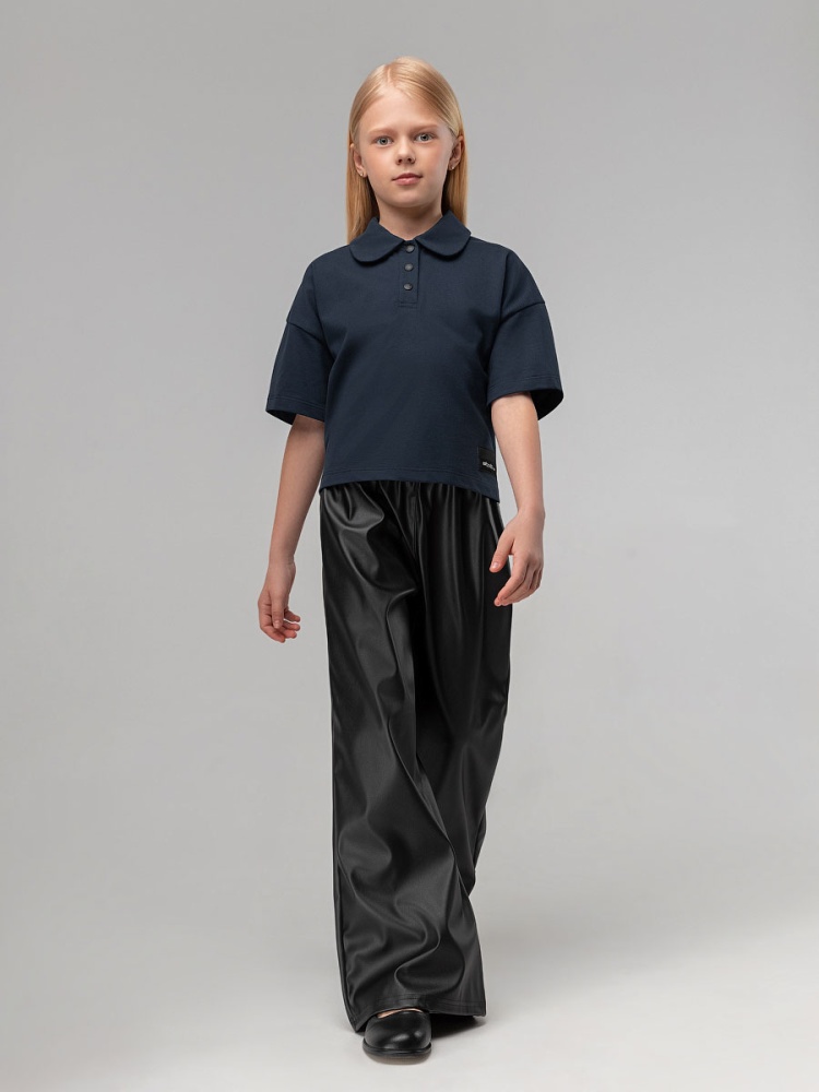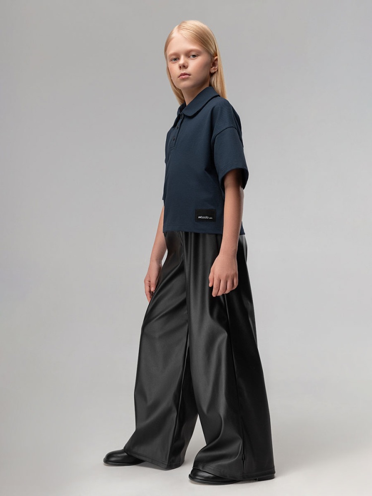 Материал искусственная кожа Состав 100% полиэстер Свободные брюки-трубы из искусственной кожи.