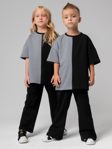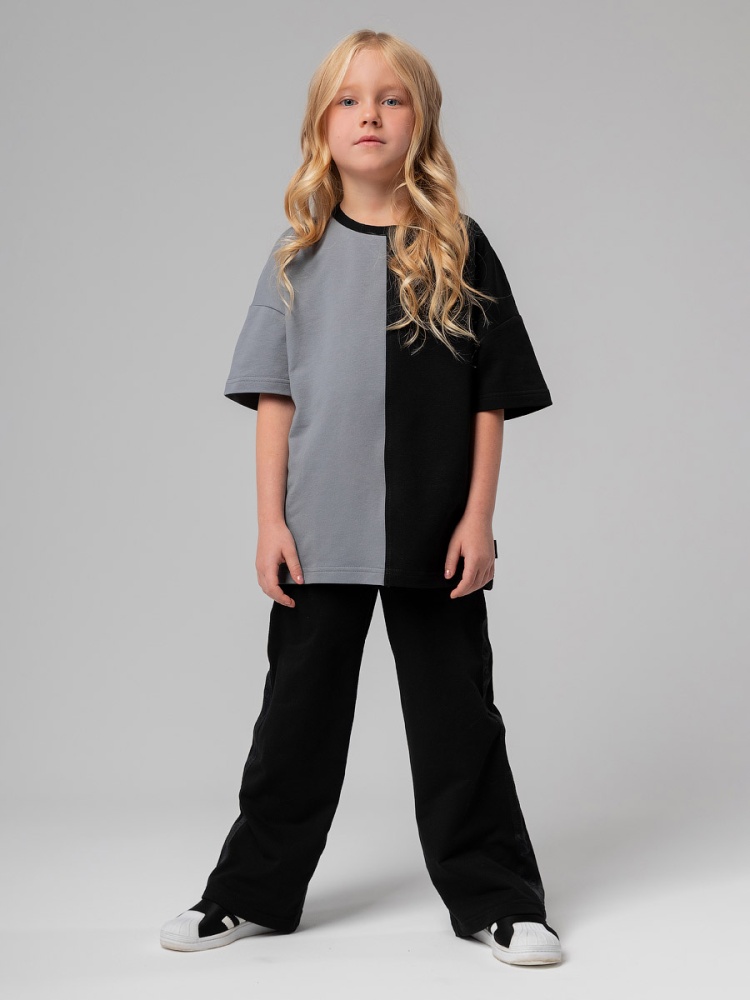 Материал футер двухнитка Состав 92% хлопок 8% лайкра Брюки детские свободного силуэта. Детали: свободный покрой, пояс - эластичная резинка, карманы с отрезным бочком. Состав: футер двухнитка 92% хлопок 8% лайкра