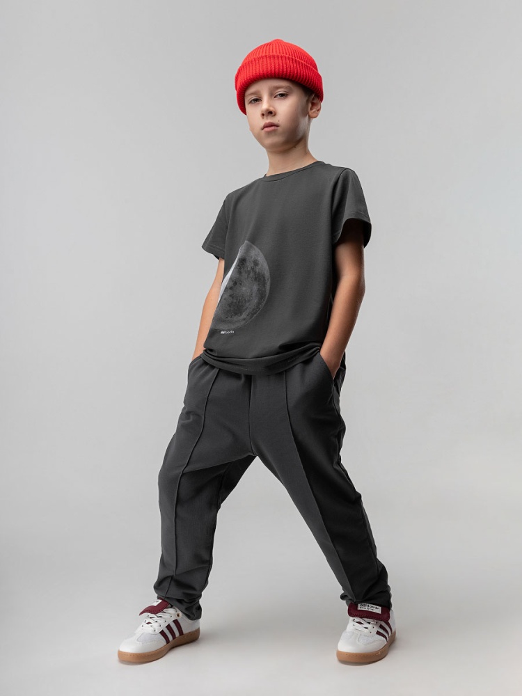 Материал футер двухнитка Состав 92% хлопок 8% лайкра Брюки для детей дошкольного возраста. Брюки прямые свободные с внутренней резинкой в поясе, по бокам карманы с отрезным бочком, отстроченные стрелки, низ брюк ровный. Состав: футер двухнитка 92% хлопок 8% лайкра
