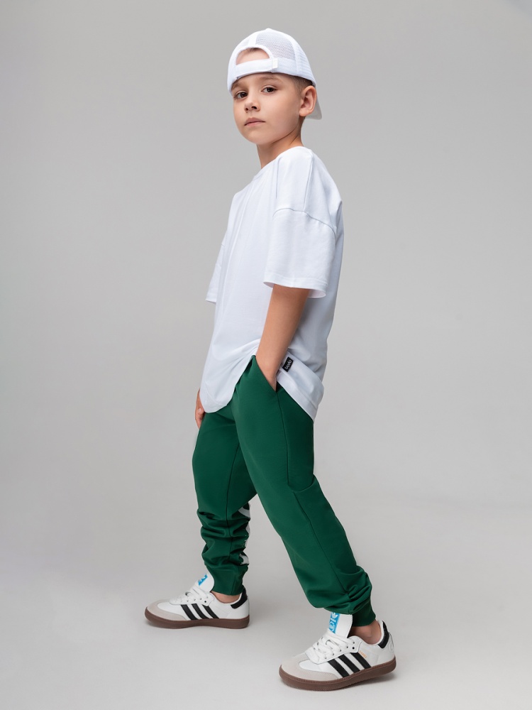Материал футер двухнитка Состав 92% хлопок 8% лайкра Брюки- джоггеры детские. Детали: свободный покрой, пояс - эластичная резинка, низ изделия- манжеты. Состав: футер двухнитка 92% хлопок 8% лайкра