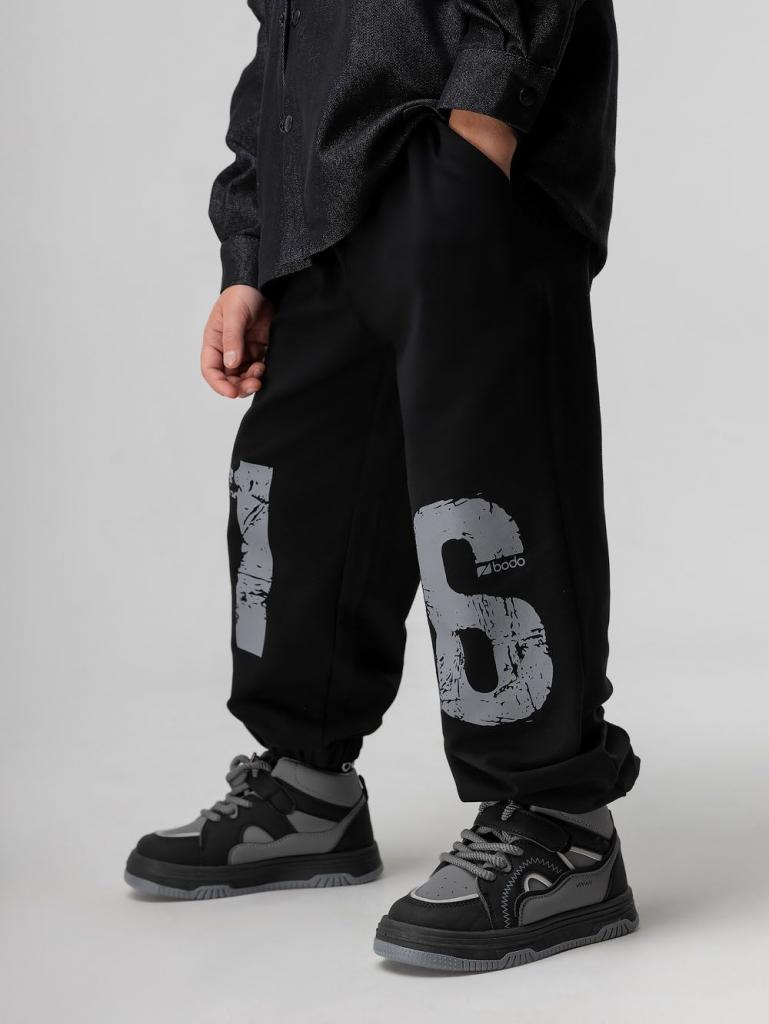 Артикул 6-640MU Состав 92% хлопок 8% лайкра Материал футер двухнитка Свободные брюки на поясе с внутренней резинкой. Низ брюк с манжетой на резинке. Брюки с боковыми карманами. Брюки с принтом "16"