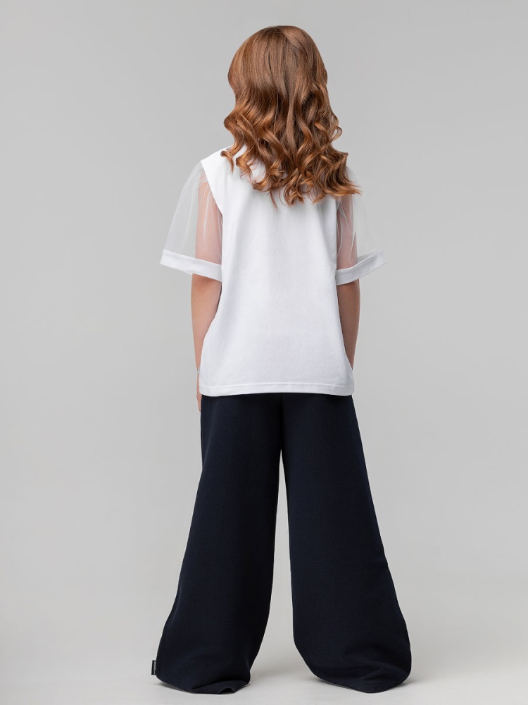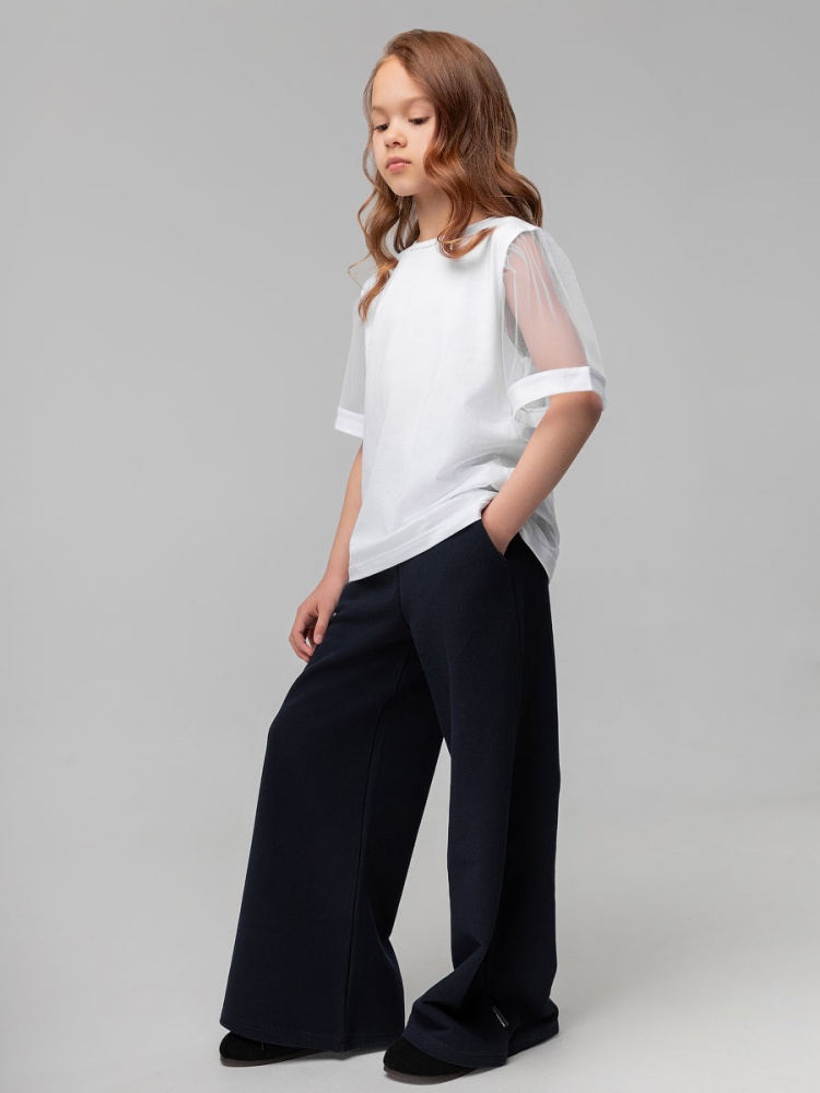 Материал футер двухнитка Состав 80% хлопок 20% полиэстер Свободные, расширенные к низу брюки с боковыми разрезами из материала пике.