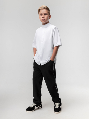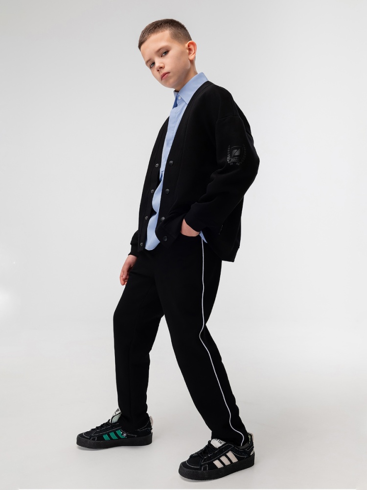 Материал футер двухнитка Состав 80% хлопок 20% полиэстер Прямые, слегка зауженные брюки с атласным белым кантом из материала пике. С боковыми карманами.