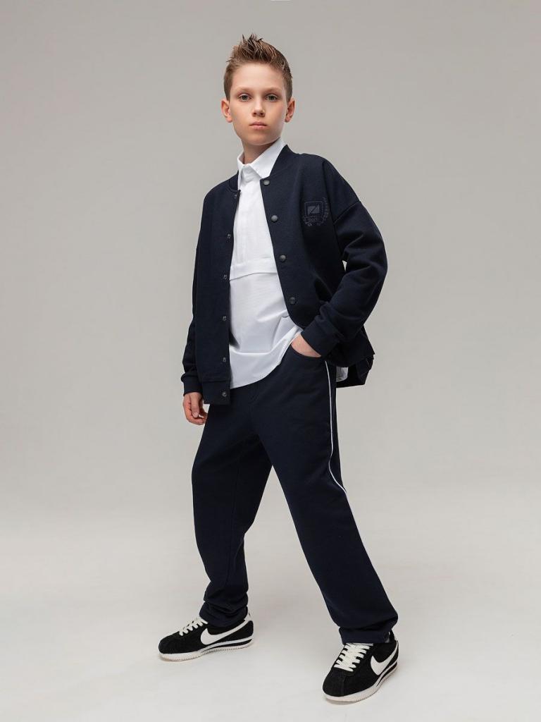 Артикул 37-76MU Состав 80% хлопок 20% полиэстер Материал футер двухнитка Прямые, слегка зауженные брюки с атласным белым кантом из материала пике. С боковыми карманами.