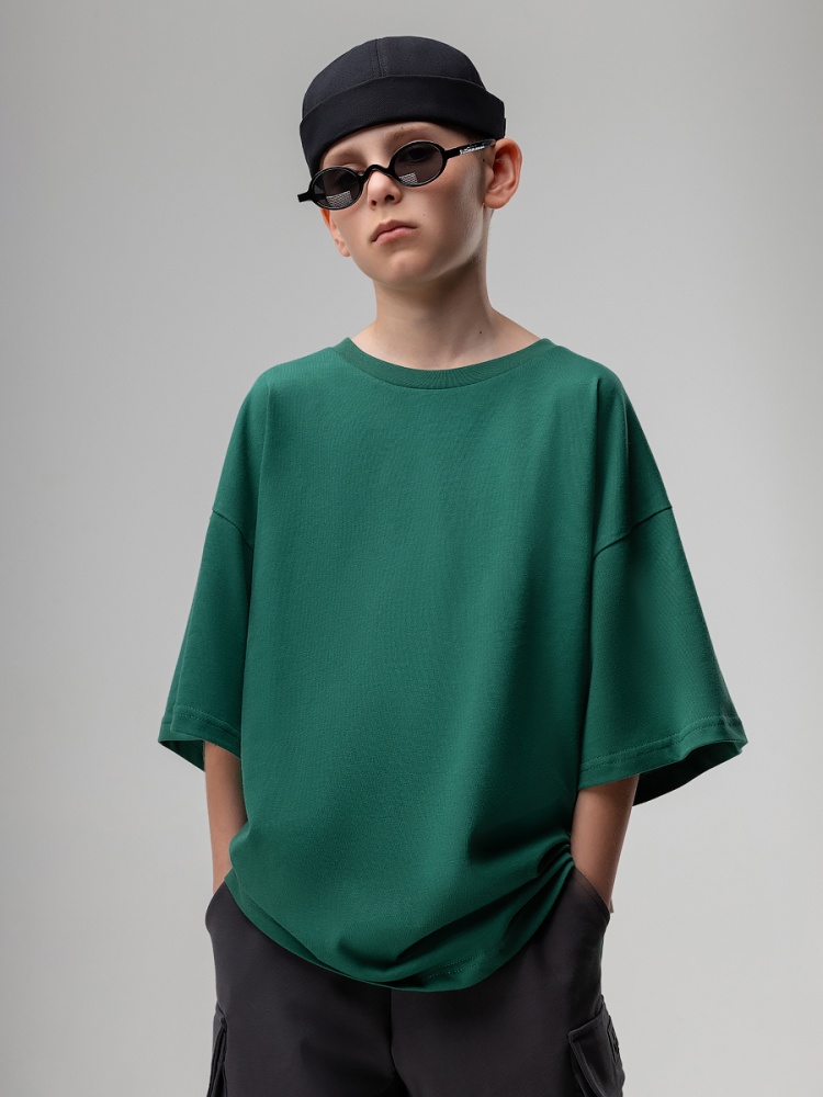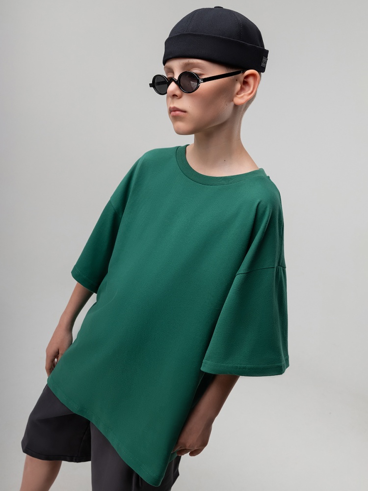 Материал кулирная гладь Состав 100% хлопок Футболка для детей школьного возраста. Футболка свободного силуэта с втачным коротким рукавом. Горловина футболки округлой формы. Низ изделия прямой. На спинки располагается принт.