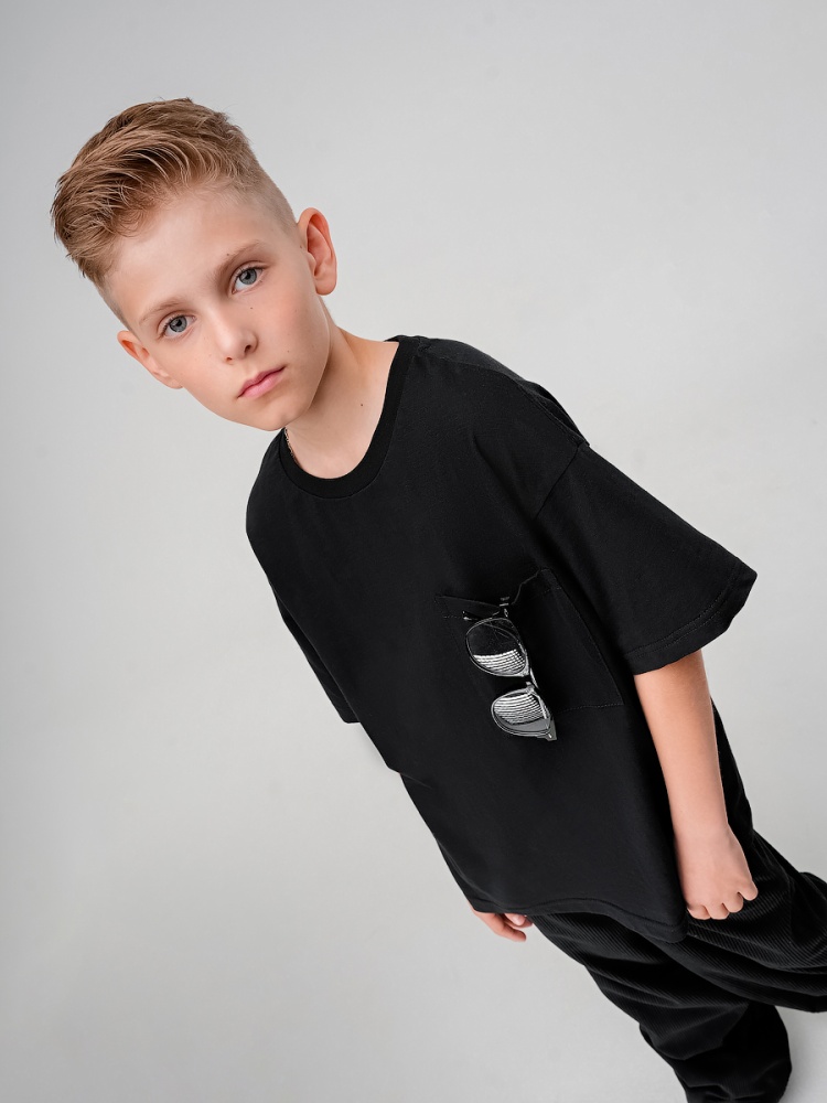 Материал кулирная гладь Состав 100% хлопок Свободная футболка с накладным карманом.