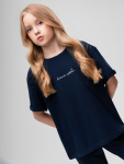 Материал кулирная гладь Состав 92% хлопок 8% лайкра Свободная, прямая футболка с коротким рукавом. Принт на полочке.