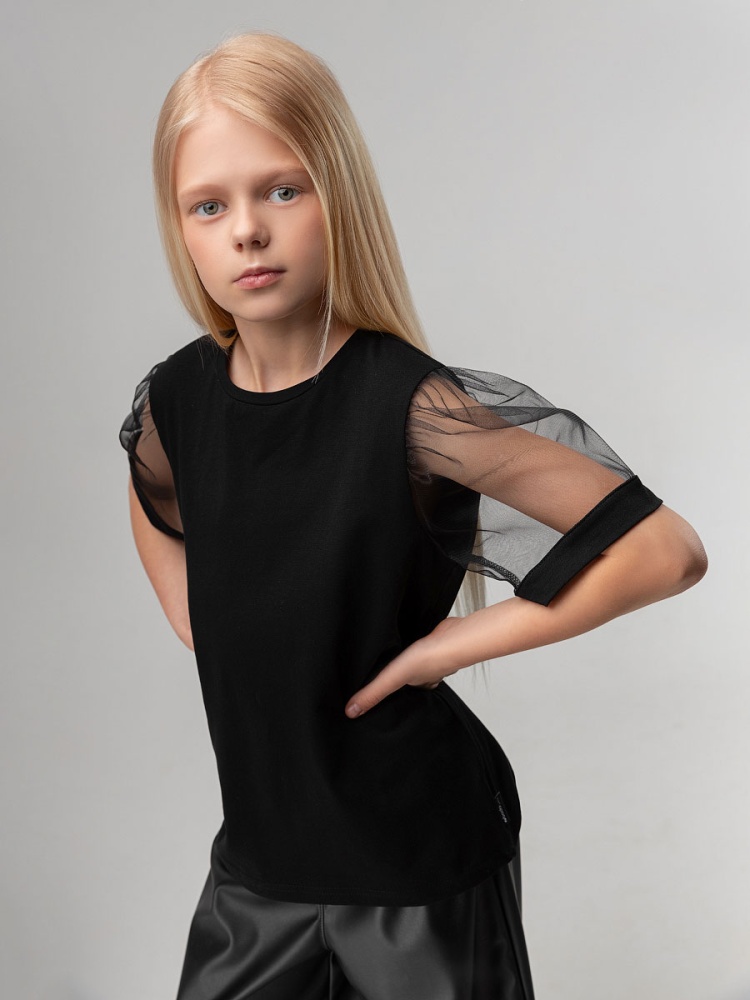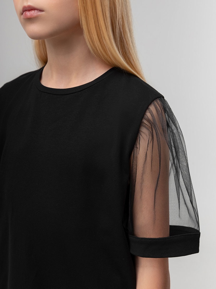 Материал кулирная гладь Состав 92% хлопок 8% лайкра Футболка с короткими фатиновыми рукавами фонарик.