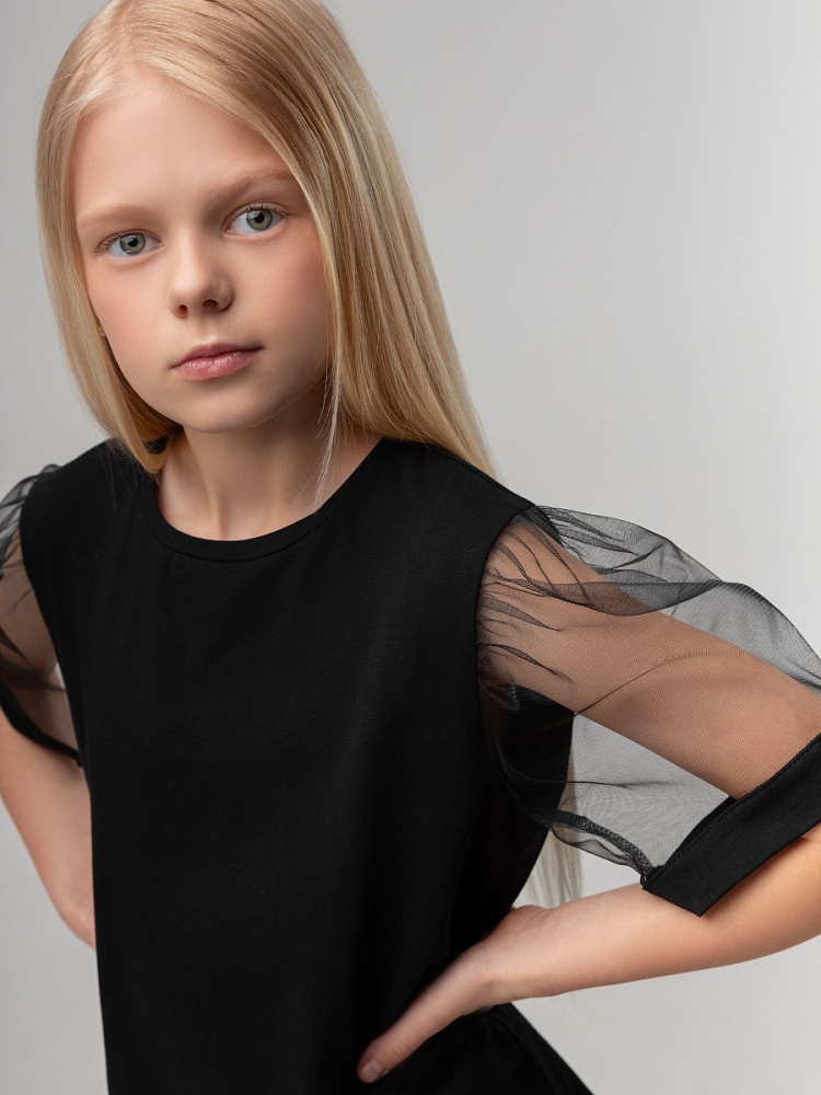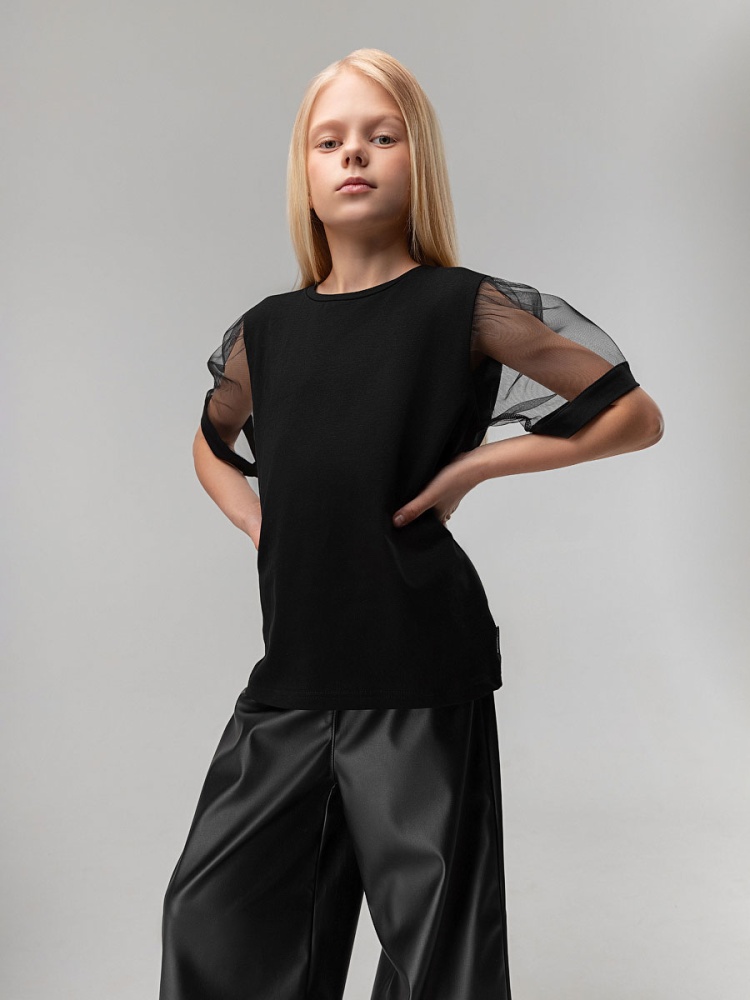 Материал кулирная гладь Состав 92% хлопок 8% лайкра Футболка с короткими фатиновыми рукавами фонарик.