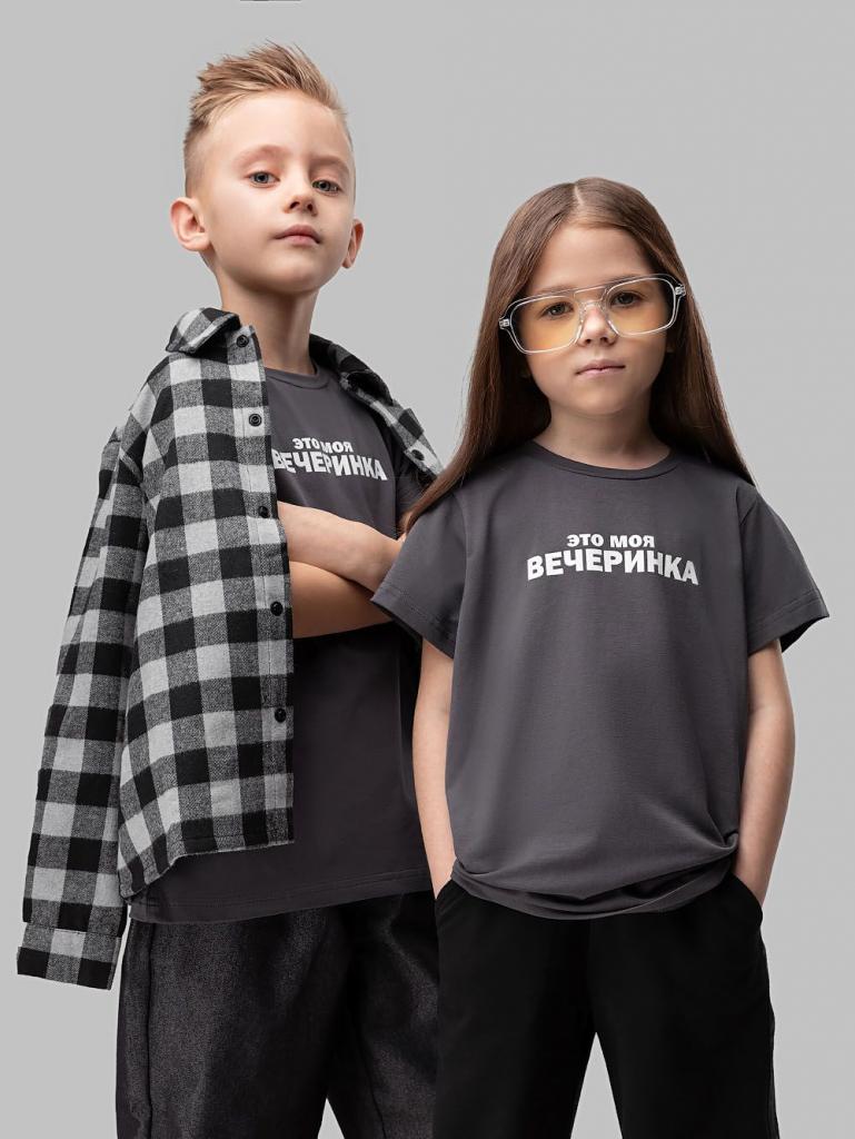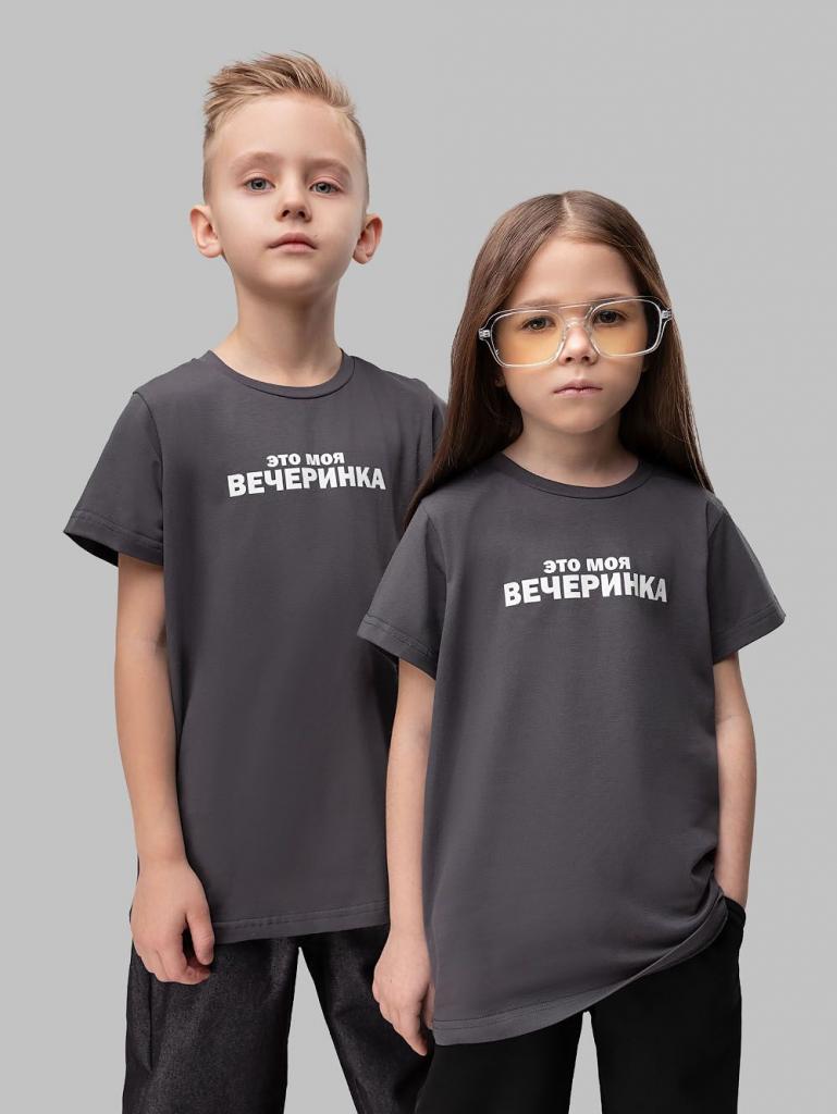 Артикул 4-220MU Состав 92% хлопок 8% лайкра Материал кулирная гладь Футболка с коротким рукавом, полуприлегающего покроя, округлый вырез горловины. На полочке принт "Это моя вечеринка"