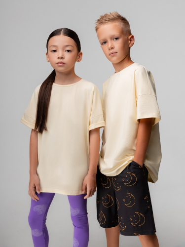 Материал кулирная гладь Состав 92% хлопок 8% лайкра Футболка оверсайз детская. Настоятельно рекомендуем брать свой размер, так как в крой уже заложен оверсайз. Детали: короткий спущенный рукав, свободный покрой, округлый вырез горловины.