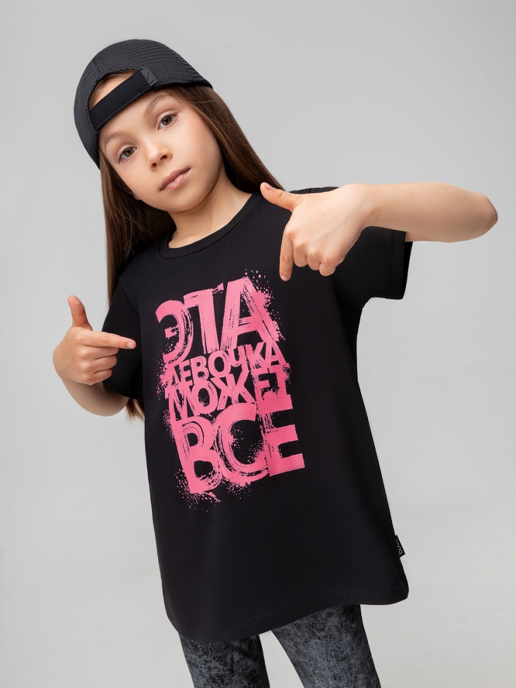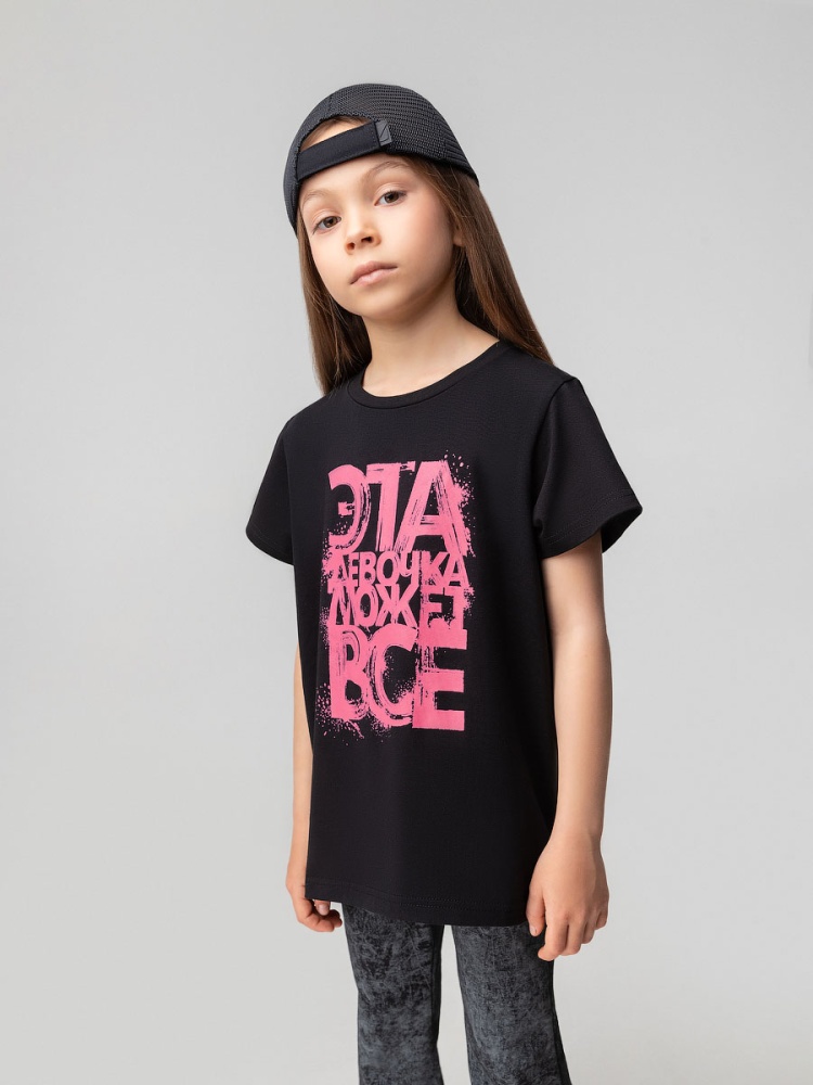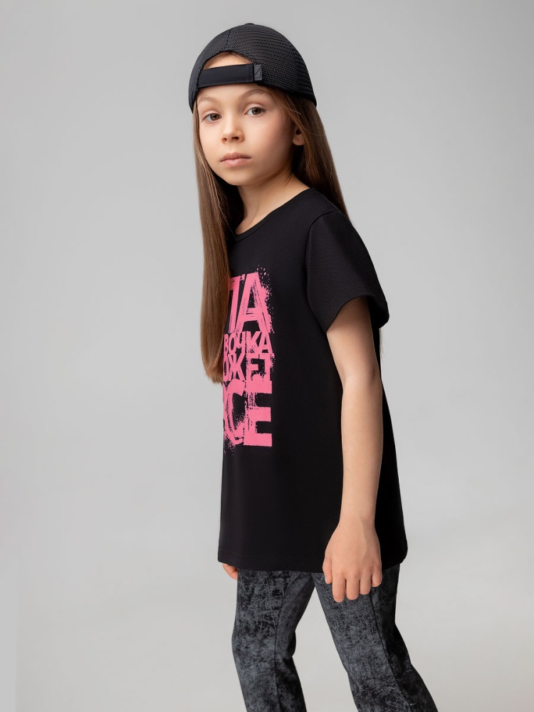 Футболка 4-409MU; черный (розовый)