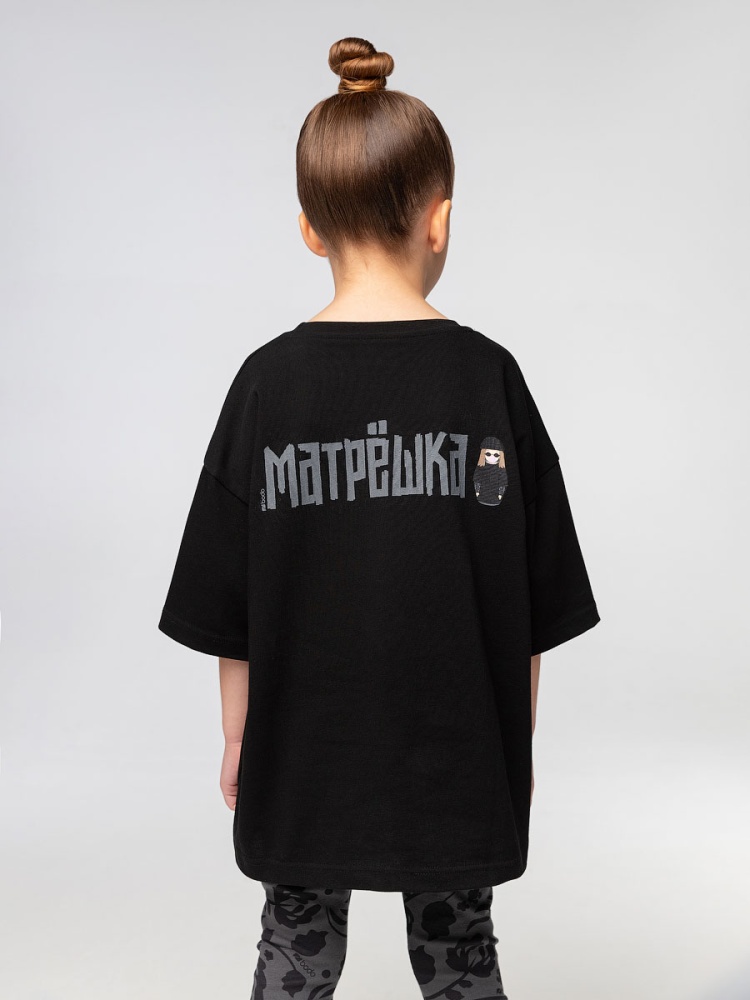 Материал кулирная гладь Состав 100% хлопок Свобная футболка с коротким рукавом. На полочке принт "Матрешка".