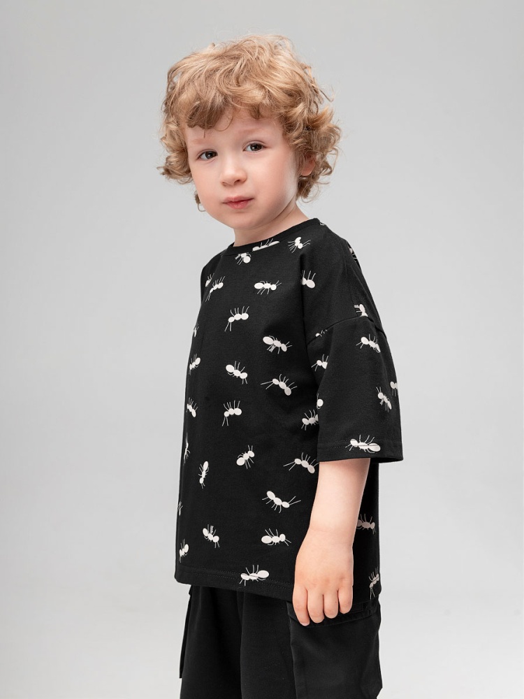 Материал кулирная гладь Состав 92% хлопок 8% лайкра Свободная футболка с коротким рукавом. Набивка "муравьи"
