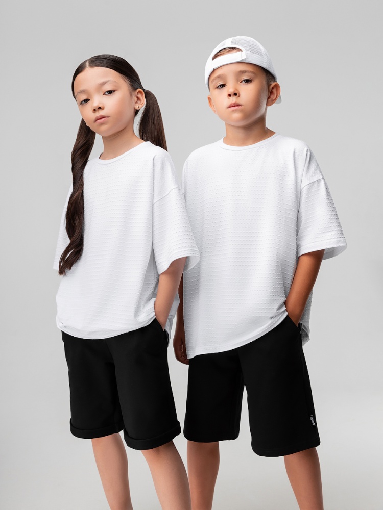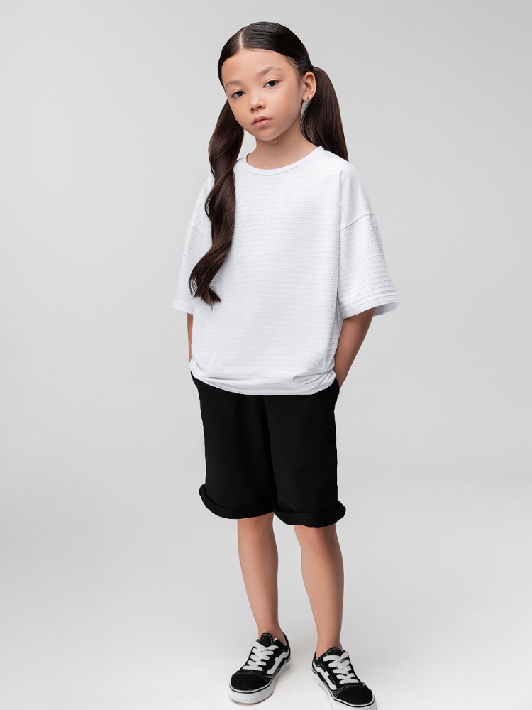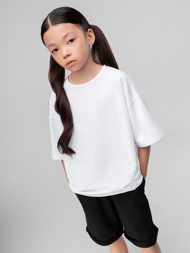 Материал кулирная гладь Состав 92% хлопок 8% лайкра Свободная футболка из кулирной глади с тиснением, короткий рукав.