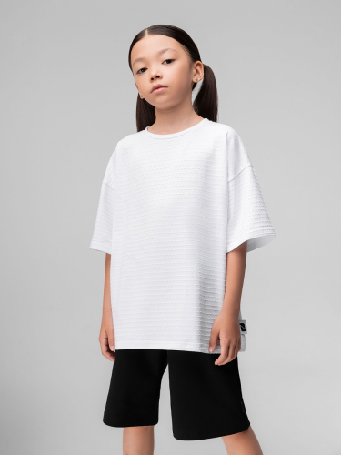 Материал кулирная гладь Состав 92% хлопок 8% лайкра Свободная футболка из кулирной глади с тиснением, короткий рукав.
