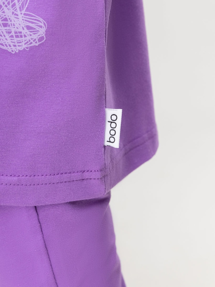 Материал кулирная гладь Состав 92% хлопок 8% лайкра Свободная футболка с коротким рукавом. Горловина футболки округлой формы. Печать на полочке bodo сердечки.