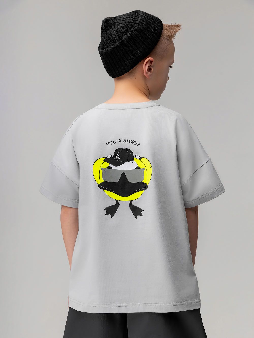 Футболка "Гусь" 4-435MU; серый (салатовый)