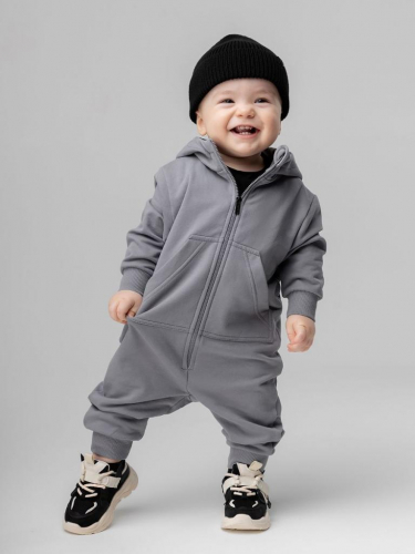 Артикул 19-47MU Материал футер двухнитка с начесом Состав 92% хлопок 8% лайкра Комбинезон для малышей, без подкладки, на молнии. Комбинезон с капюшоном и карманом «кенгуру».