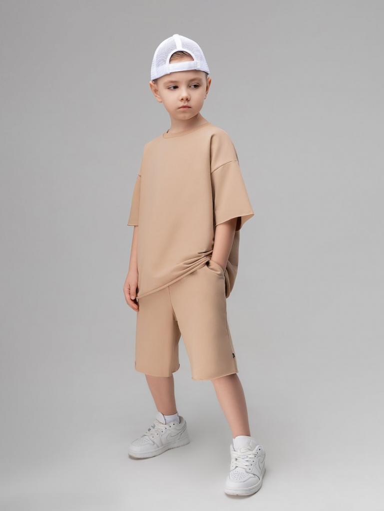Артикул 11-289МU Состав 92% хлопок 8% лайкра Материал футер двухнитка Костюм для детей. Шорты, детали: свободный покрой, пояс - эластичная резинка, карманы с отрезным бочком. Футболка, детали: короткие рукава, свободный покрой, округлый вырез горловины. Состав: футер двухнитка 92% хлопок 8% лайкра.