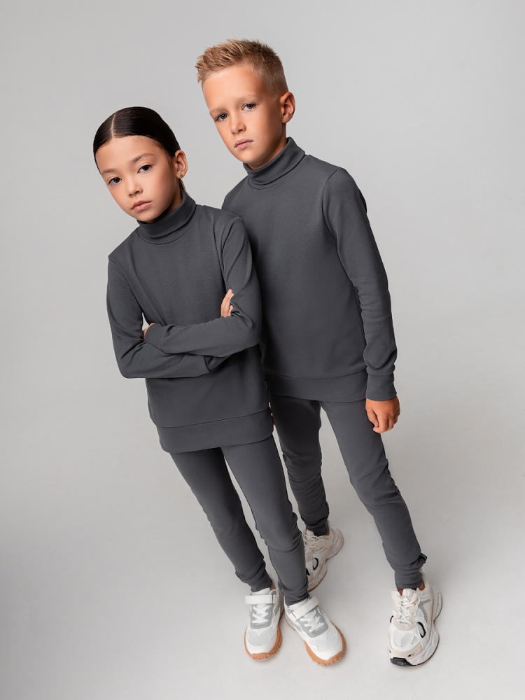 Материал рибана Состав 92% хлопок 8% лайкра Детский костюм. Водолазка с воротником-стойка, рукава на манжетах, полуприлегающий покрой. Леггинсы. Детали: прилегающий покрой, пояс - эластичная резинка, зауженный низ, без застежек, без карманов. Состав:рибана 92% хлопок 8% лайкра