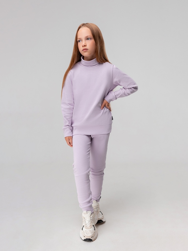 Материал рибана Состав 92% хлопок 8% лайкра Детский костюм. Водолазка с воротником-стойка, рукава на манжетах, полуприлегающий покрой. Леггинсы. Детали: прилегающий покрой, пояс - эластичная резинка, зауженный низ, без застежек, без карманов. Состав:рибана 92% хлопок 8% лайкра