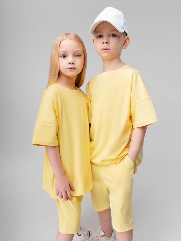 Артикул 11-373МU Состав 92% хлопок 8% лайкра Материал кулирная гладь Костюм: футболка и шорты. Свободная футболка с коротким рукавом, округлый вырез горловины. Шорты на пояс - эластичная резинка, боковые карманы.