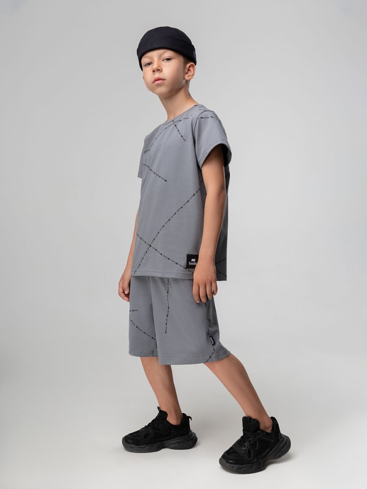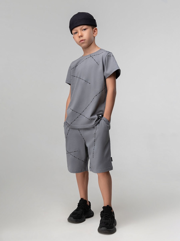 Материал кулирная гладь Состав 92% хлопок 8% лайкра Футболка для детей дошкольного возраста. Футболка свободного силуэта с втачным коротким рукавом. Горловина футболки округлой формы. Низ изделия прямой.Шорты для детей дошкольного возраста. Шорты свободные на притачном поясе с внутренней резинкой. Шорты с боковыми карманами и одним накладным карманом на правой задней половинке шорт.