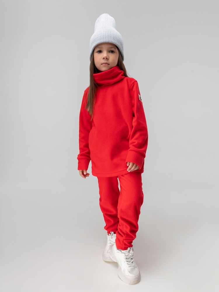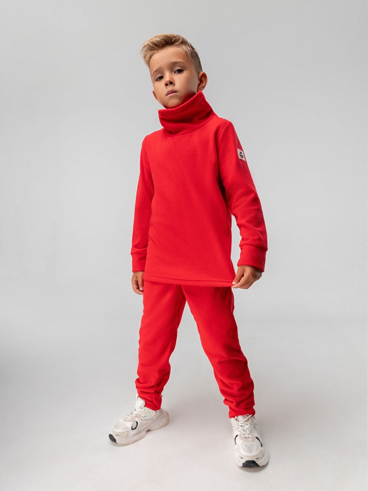 Материал флис Состав 100% полиэстер Флисовый костюм для детей.Толстовка с воротником-стойка, рукава на манжетах, полуприлегающий покрой. Брюки- джоггеры, детали: пояс - эластичная резинка, низ изделия- манжеты. Состав: флис 100% полиэстер, плотность 190г