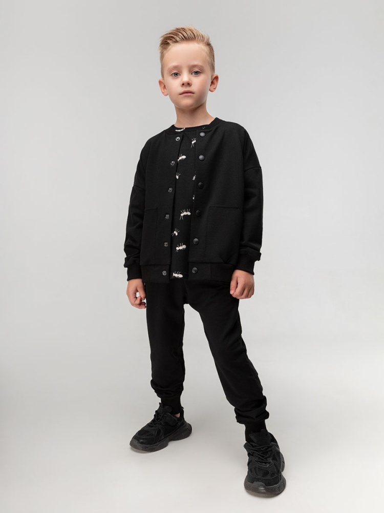 Материал футер двухнитка Состав 92% хлопок 8% лайкра Костюм для детей дошкольного возраста. Бомбер: полуприлегающий покрой, застежка - кнопки, рукава на манжетах. Брюки: прямые, свободные, на притачном поясе с внутренней резинкой, на притачной манжете по низу изделия, с боковыми карманами.