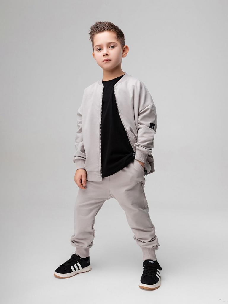 Артикул 11-537MU Состав 92% хлопок 8% лайкра Материал футер двухнитка Костюм: бомбер и брюки. Свободный, прямой бомбер с центральной застёжкой на молнию, с длинными рукавами. Брюки прямые свободные на поясе с внутренней резинкой, манжет по низу.