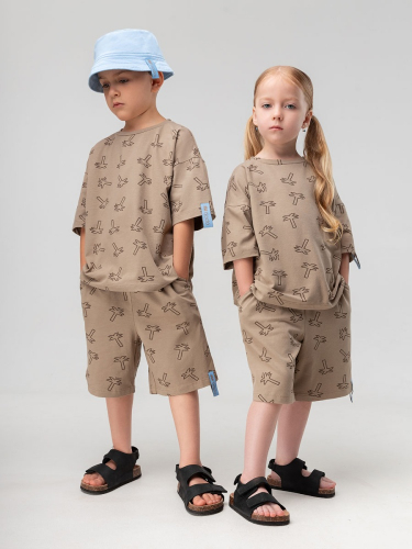 Материал кулирная гладь Состав 92% хлопок 8% лайкра Костюм для детей дошкольного возраста. Футболка укороченная свободного силуэта со спущенным плечом с втачным коротким рукавом. Горловина футболки округлой формы, обработана рибаной.Шорты-юбка для детей дошкольного возраста. Шорты свободные на притачном поясе с внутренней резинкой, с боковыми карманами.