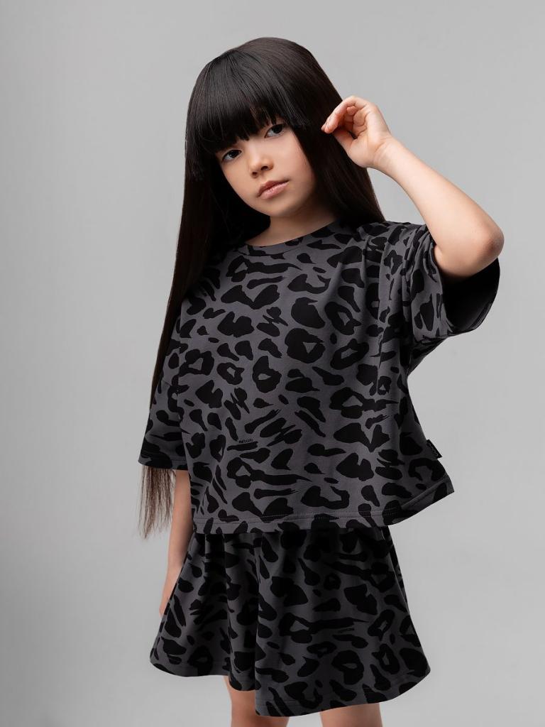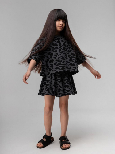 Артикул 11-581MU Состав 92% хлопок 8% лайкра Материал кулирная гладь Костюм для детей дошкольного возраста. Футболка укороченная свободного силуэта со спущенным плечом с втачным коротким рукавом. Горловина футболки округлой формы, обработана рибаной.Шорты-юбка для детей дошкольного возраста. Шорты свободные на притачном поясе с внутренней резинкой, с боковыми карманами.